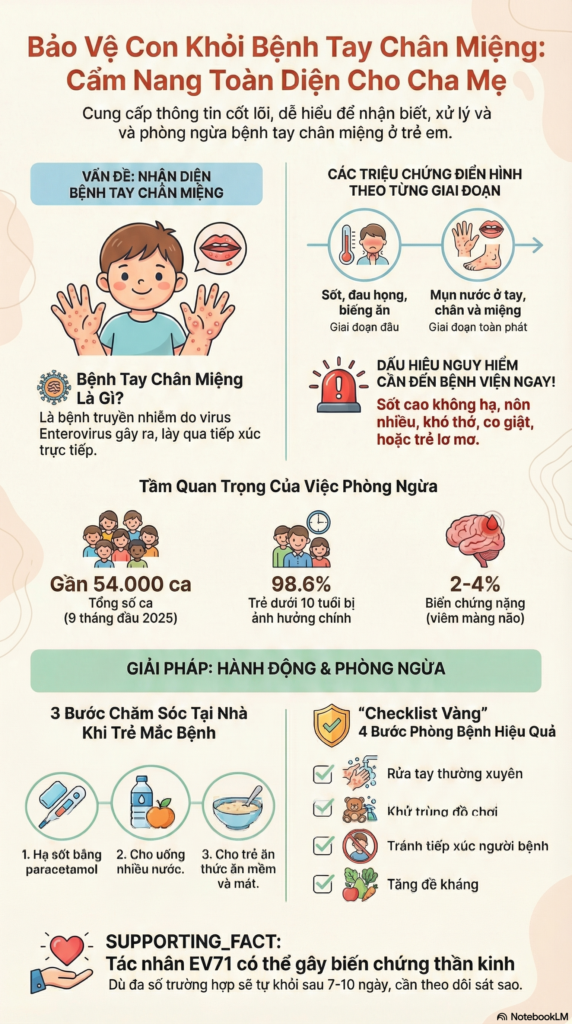 Bệnh tay chân miệng là một bệnh lý phổ biến và có thể gây ra những hậu quả nghiêm trọng, đặc biệt ở trẻ em. Việc hiểu biết đầy đủ về bệnh, áp dụng đúng các biện pháp phòng ngừa và điều trị kịp thời là yếu tố then chốt để bảo vệ sức khỏe cho trẻ em. Sự phối hợp giữa gia đình, nhà trường và cơ quan y tế sẽ góp phần kiểm soát hiệu quả căn bệnh này.