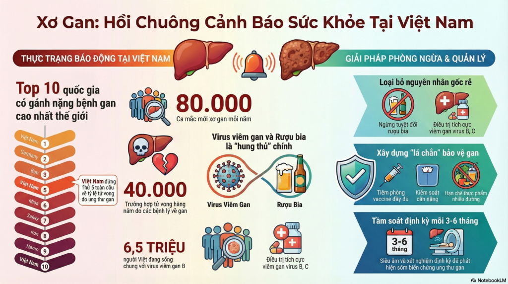 Việt Nam nằm trong nhóm các quốc gia có tỷ lệ mắc bệnh gan cao trên thế giới, chủ yếu do viêm gan virus B, C và tình trạng lạm dụng rượu bia.