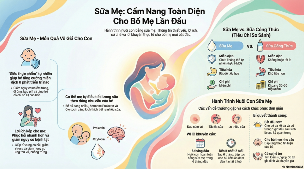 Sữa mẹ là nguồn dinh dưỡng tối ưu và tự nhiên nhất cho trẻ sơ sinh, cung cấp tất cả các chất cần thiết cho sự phát triển toàn diện của bé trong 6 tháng đầu đời. Quá trình sản xuất sữa mẹ là một cơ chế sinh lý tinh vi, được điều tiết bởi nhiều hormone và phản hồi từ nhu cầu bú của trẻ.