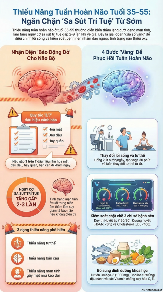 Thiểu năng tuần hoàn não là một tình trạng y khoa quan trọng với nhiều nguyên nhân và biểu hiện lâm sàng đa dạng. Bệnh có thể ảnh hưởng nghiêm trọng đến chất lượng cuộc sống, đặc biệt ở người cao tuổi. Việc chẩn đoán và điều trị thiểu năng tuần hoàn não đòi hỏi sự phối hợp giữa các chuyên khoa tim mạch, thần kinh và lão khoa. Phòng ngừa đóng vai trò then chốt, bao gồm kiểm soát các yếu tố nguy cơ, duy trì lối sống lành mạnh và theo dõi sức khỏe định kỳ. Với cách tiếp cận tổng thể và điều trị kịp thời, hầu hết bệnh nhân thiểu năng tuần hoàn não có thể duy trì chức năng và chất lượng cuộc sống tốt.